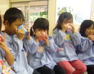 最近の流行りは男の子も入っての「家族ごっこ」。お父さんになったり、お兄さんになったり。時には赤ちゃんやペットになったりして(!)、遊んでいます。