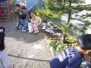 花壇の植え替えのため、枯れた花を抜いて、石灰をまいて、土を掘り起こして、の作業を子どもたちと一緒にしました。