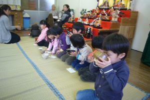 「おいしぃ~」とこぼれるお母さんたちの声に子どもたちも笑顔がこぼれていました。(ま)