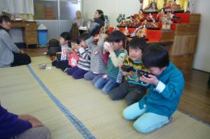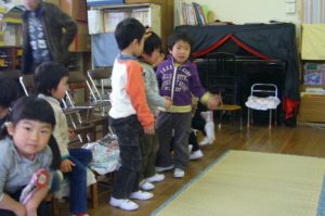 横にいるお友達を気にしながら(目はまっすぐなままの子もいましたが…)