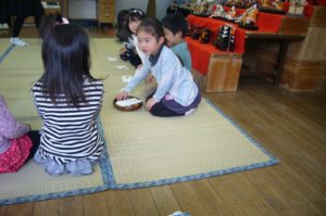 隣のお友達に「おさきに…」と言ってお菓子、お茶をいただくその言葉はとても可愛らしいのですが、小さな子どもが精一杯、思いやる気持ちを言葉にしているからこそ、可愛いと思い、またその子全体が宝物のような気がするのです。