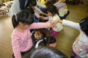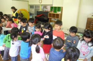 卒園式を翌週に控え、全園児でお別れ会をしました。