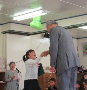 年長さんたちはちょっと照れくさそう…でも嬉しそう。