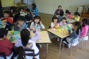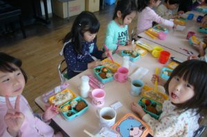年長さんたちにとって幼稚園で食べる最後の給食。