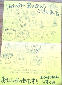 そして、給食を作ってくれた給食センターの方々に感謝のお手紙を書きました。