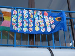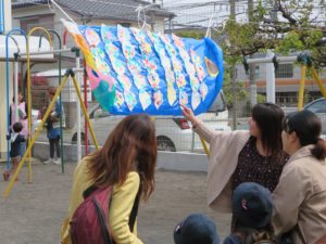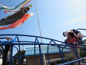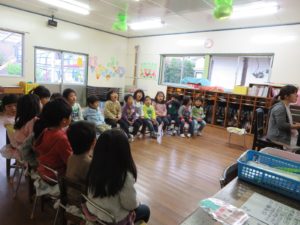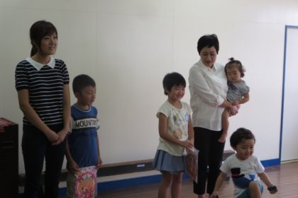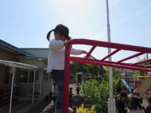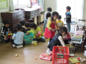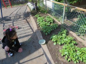年中さんの時に植えたじゃがいもに「ニジュウヤホシテントウムシダマシ」がつくので、年長さんがせっせと取っています。