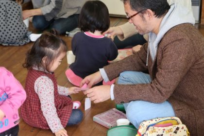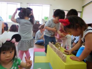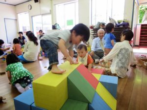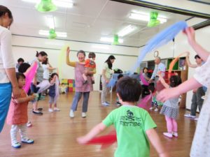 親子での触れ合い遊びや自由遊びをする中で、どんどん自ら遊ぶ事が出来るようになっていました。