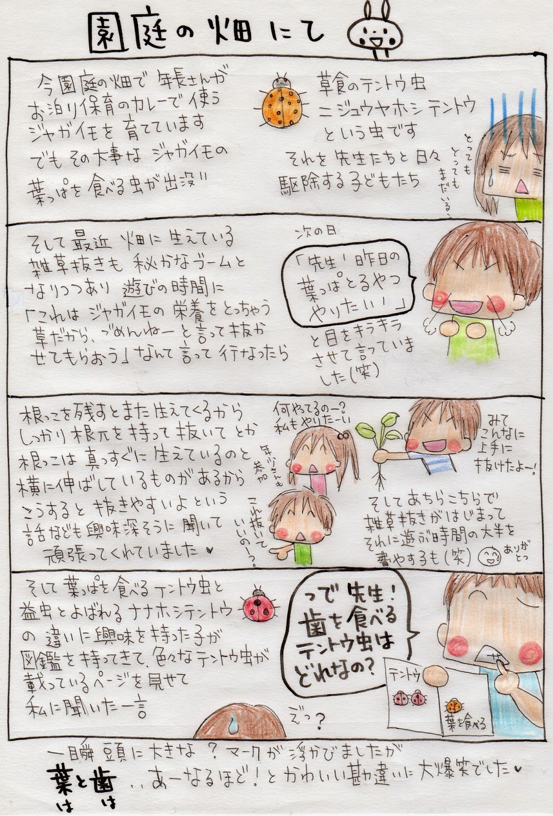 (ひ)先生の4コマ…園庭の畑にて