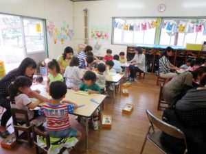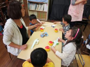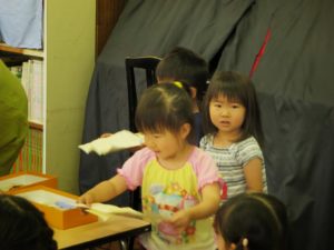 ※プレイルーム:絵本、制作、ゲームの中から子どもが自由に選択して遊ぶ活動を青梅幼稚園では「プレイルーム」と呼んでいます。