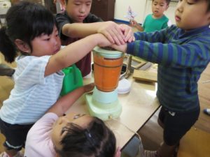 この時、大体「♫あーさーはー ミックスジュース ミックスジュース♫」と子どもたちは唄います。