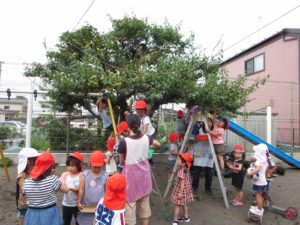 でも、やはり、木に登ってしか取れない実もたくさんあるのですが、今年、木に登って取った子は女の子一人でした。