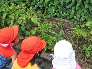 年長さんがじゃがいもを植えたあたりに、気温の高い日によく見かけるのがトカゲです。