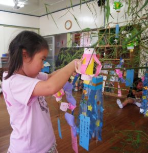 「七夕飾り、綺麗に飾ってねぇ!」