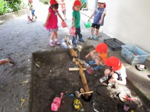 「どろだんご作ってるよー」