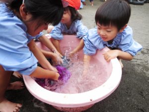 風呂敷をみんなでじゃぶじゃぶ