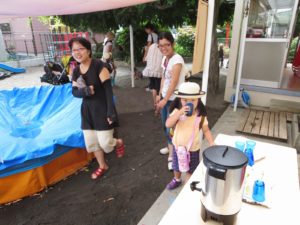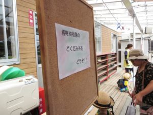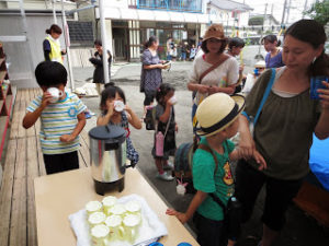幼稚園に生えているどくだみ草を摘み、二週間~三週間干した後、葉っぱをちぎって、麦茶とブレンドしました。多くの方が興味を持って飲んでくれましたが、「あー、体に良さそうな味」とか「………」