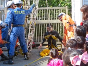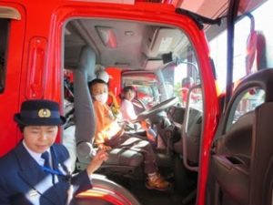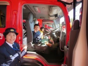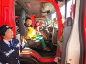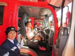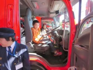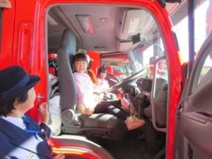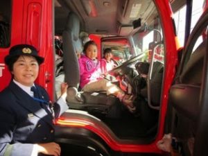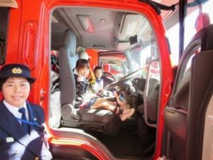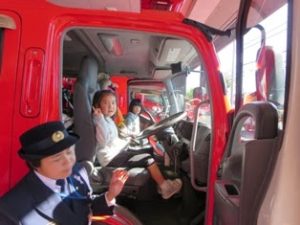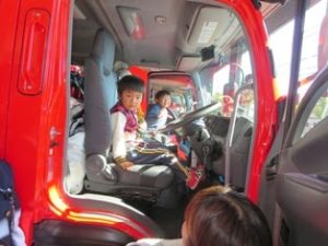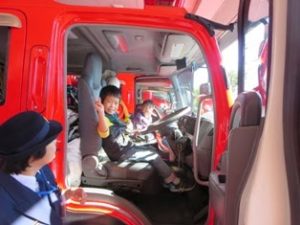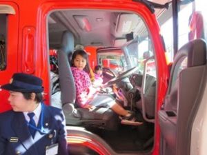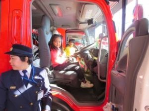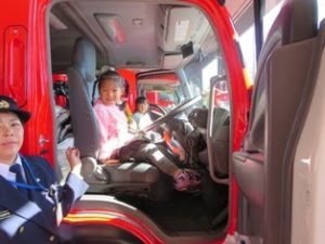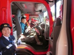 レスキュー隊の方々の救助の訓練の様子を見せていただいたり、消防自動車に乗せてもらったりと、楽しい時間を過ごすことができました。