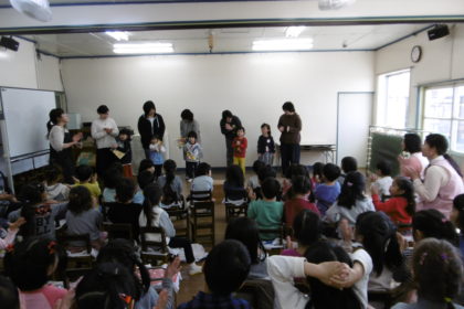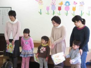 今月は将来 大きくなったら、幼稚園の先生になりたい子、ケーキ屋さんになりたい子、そしてスーパーマンになりたい子の3人でした。