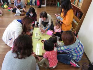 たくさんの親子が参加して、みんなで楽しいひと時を過ごすことができました。今日は0歳~3歳のお友達で、中には初めて青梅幼稚園に足を運んだ方もいらっしゃったようです。