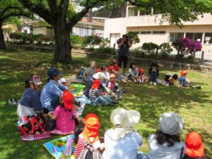 青梅幼稚園では河辺下へ春の遠足に行ってきました。