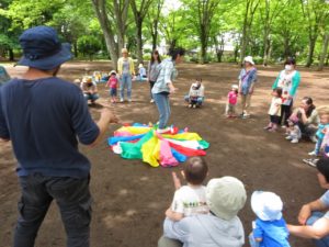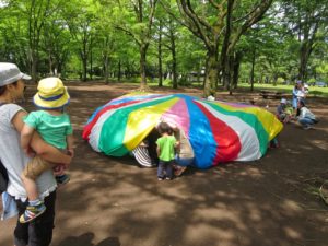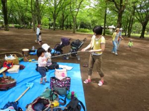 そんな中、今日のつくし組には23組の親子と りす組(3歳児クラス)の子どもたち7名が集まり、楽しい時間を過ごすことができました。