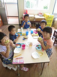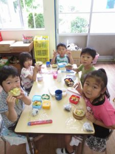 きゅうりが苦手…にんじん苦手…マヨネーズ苦手…そんな子たちもいましたが、みんなで楽しく作った物は不思議とおいしく食べられてしまうのですね。おかわりをする子が続出だったようです。