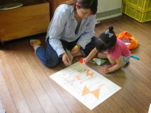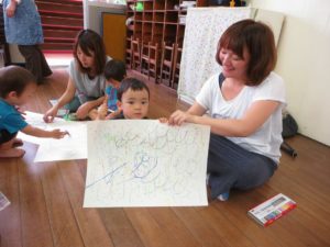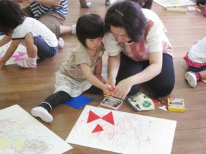 お母さんたちが率先して、制作に取り組んでいただけました。お母さんが楽しそうに作っている姿を子どもが見て「楽しいな」と思うこと。とても大切なことだな、と思いました。