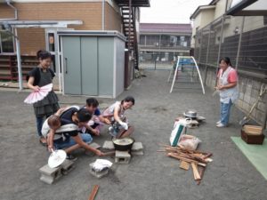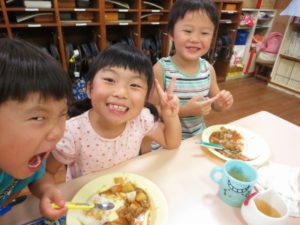 夕飯はお母さんたちのご協力もいただいて、おいしいカレーライスをいただきました。