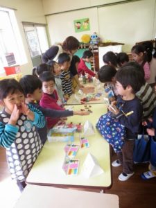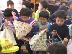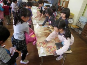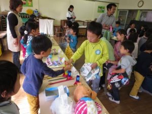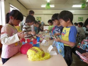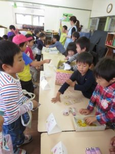「どれ、買おうかな~」 「僕が作ったの、売れるかな~?」など、それぞれ子どもたちはドキドキを隠せない様子。でもお買い物が始まると「ヤッホー!」と本当に生き生きと売り買いしていました。