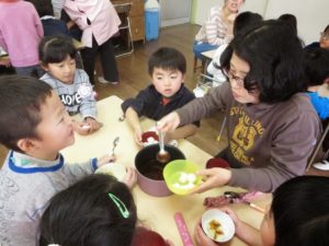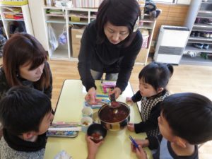 五感の中で特に嗅覚を敏感にし、「あ!お湯のにおい!」 「あ!粉のにおい!!」と、いちいち反応する子どもたちの様子が面白かったです。
