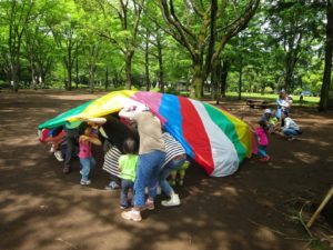 ギターとかパラバルーンとか、楽しく皆さんと一緒に遊びたいと思います。