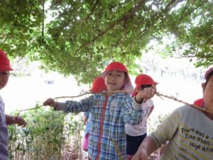 今日は若草公園へみんなで行きました。りす組、うさぎ組の子どもたちにとっては園外活動は初めて。ドキドキちょっと不安だったかな?大丈夫だったかな?年長さんも優しく手をつないで一緒に公園まで歩いていきました。