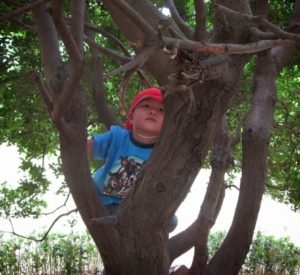 のぼる子ども多数。下にはスギのウッドチップ。