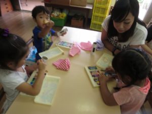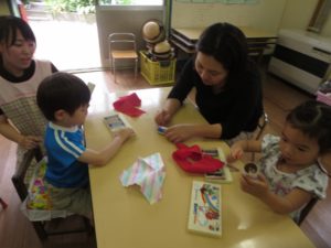 なお、今年度からボランティア登録をしてくださった卒園児の保護者の方々が託児のお手伝いをしてくださっております。おかげさまで、落ち着いて保育参加にお母さんたち、取り組めております。心より感謝申し上げます。今後もよろしくお願いいたします。(ま)
