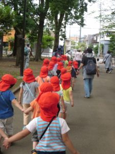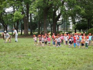 年長さんたちは去年の年長さんの様子しっかり覚えていて、「今は僕が年長だ」との自覚が歩く、走るなどの動作の中に垣間見えました。
