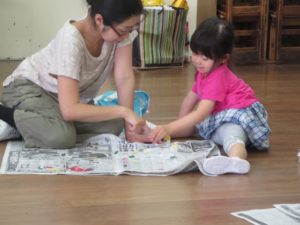 と梅雨まっただ中ですが、みんなで楽しくてるてる坊主を作りました。なかなかかわいらしい「しずくちゃん」ができていました。
