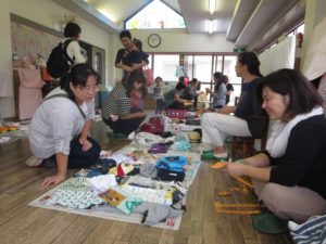 こひつじの部屋にて、各家庭からいろんな持ち寄った品々を囲み、懐かしい顔も新しい顔も、ざっくばらんな会話が聞こえておりました。こうした関わりを持てるということは素晴らしいことだと感じましたし、お母さんたちの表情や言葉から、すごく温かさを感じました。「卒園するとなかなか幼稚園に来れないから、こういうのあってよかったわ!」と言ってくださったお母さんもいらっしゃいました。本当にうれしいことです。