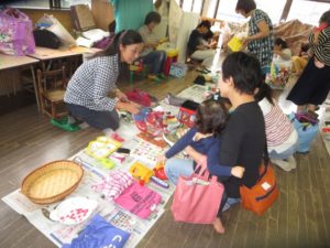 今日はつくし組と並行して卒園児母発の企画「もらってちょーだいの会」もありました。
