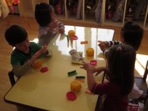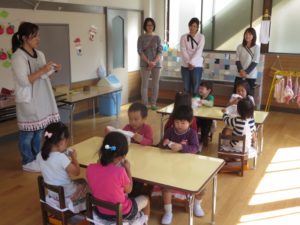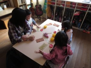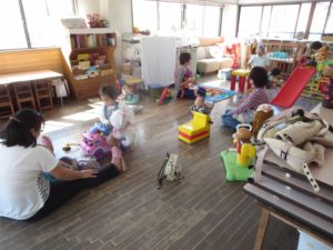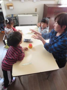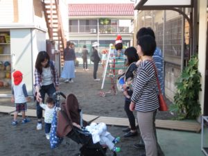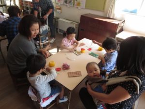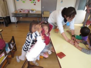 ボランティアのお母さんたち(卒園生のお母さん)にもお手伝いいただき、こひつじの部屋で保育参観中は小さな子どもたちは遊んで過ごします。
