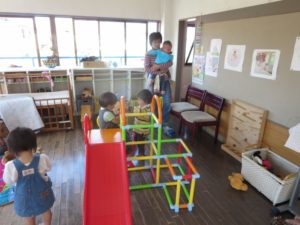保育参観だから、と特別なことはしませんが、遊ぶ空間の中にたくさん人がいると、何をしなくともワクワクしますし、子ども達にとってはお母さんがいる…というだけで特別ですよね。