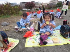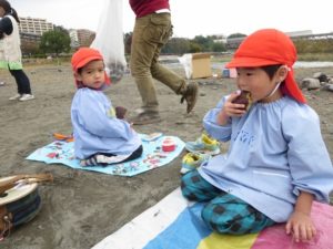 朝集合してから、すぐに焼き芋の準備に取り掛かり、焼いている間は河原を散策。