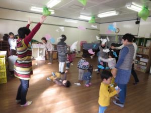 (つくし組は、未就園(0歳以上)の親子でいろいろな遊びを体験する“ミニ幼稚園”です。せひお気軽に遊びに来てください。)