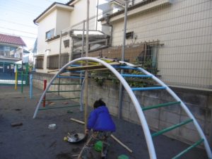 もちろん、遊びの中に自由でない遊びはないのですが、改めて本当に子どもの創造性の豊かさには日々驚かされます。そして、「自由」であるからこそ、子どもたちが物と人と好きなように関わり、遊び、成長しているのだと思うのです。