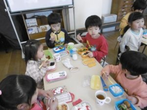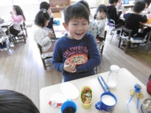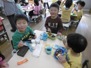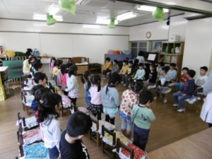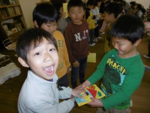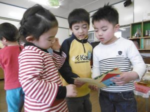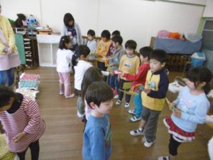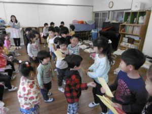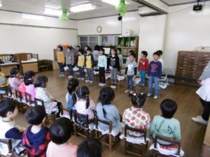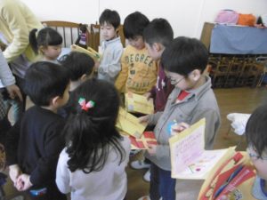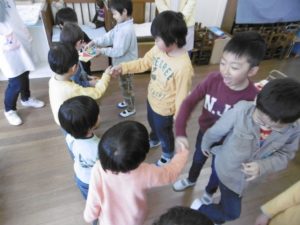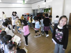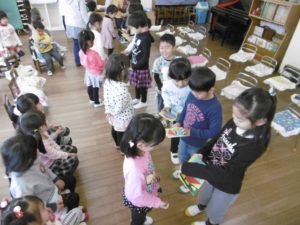 元気な年長さんたちがいなくなってしまうのは淋しいな、と思う反面、年中さんへ「頼んだぞ」とメッセージを送る年長さん達、それを「任せろ!」と応える年中さんを頼もしく思いました。(ま)