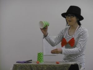 様々な種類の手品が飛び出しましたが、どれも質が高く、本気で驚くものばかりでした。しかも、それぞれに小ネタが仕込まれていて、大人も子どもも抱腹絶倒の楽しい時間となりました。