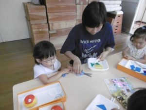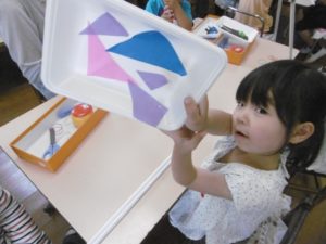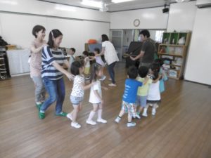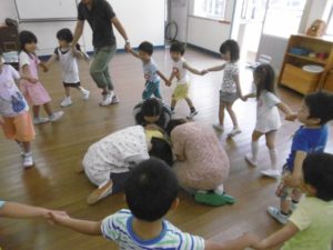 年少さんたちはこの4月に入園してから2か月、大きな変化の時期だったのではないでしょうか。入園当初より子どもたちから「毎日新しいこと一個やりたい!」と担任は言われていたそうです。それだけ外の世界に進んでいこうという意欲は旺盛で、そのエネルギーは日に日に大きくなっていくように感じました。