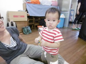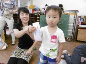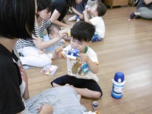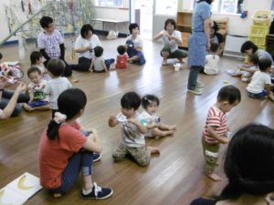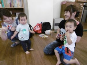 今日のつくし組はプールあそびの予定でしたが、雨のため室内あそびになりました。