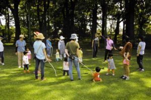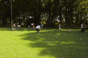 広い広い芝生の上でかけっこをしたりボールであそんだり