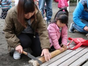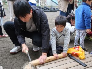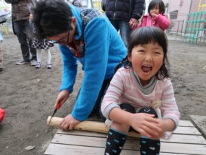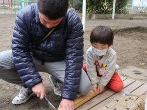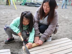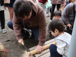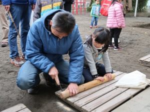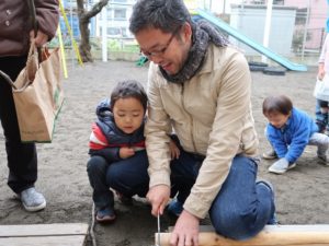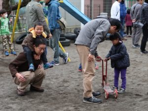 今日を振り返って、思うのはお父さんたちの距離の取り方が上手だなという事です。決して近過ぎず、けれど、お隣になった方とは積極的に協力する姿が、とても印象的でした。こうした大人の姿を子どもに見せる事の大切さを改めて感じました。