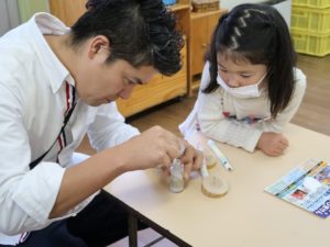 今日は青梅幼稚園では勤労感謝dayとしてお父さんやお母さん達と一緒に半日を過ごしました。自由遊びの後は手作りの砂時計を作りました。使用した砂は硅砂とガラスを細かく砕いたものを使いました。ガラスの材料は園児のお父さんからご提供いただいたものです。春の遠足の時にお話をしている中で「いいですよ。幼稚園のためなら。今度ガラス持っていきますよ」と言ってくださったのが実現した形となりました。心から嬉しく思います。ご協力ありがとうございました。